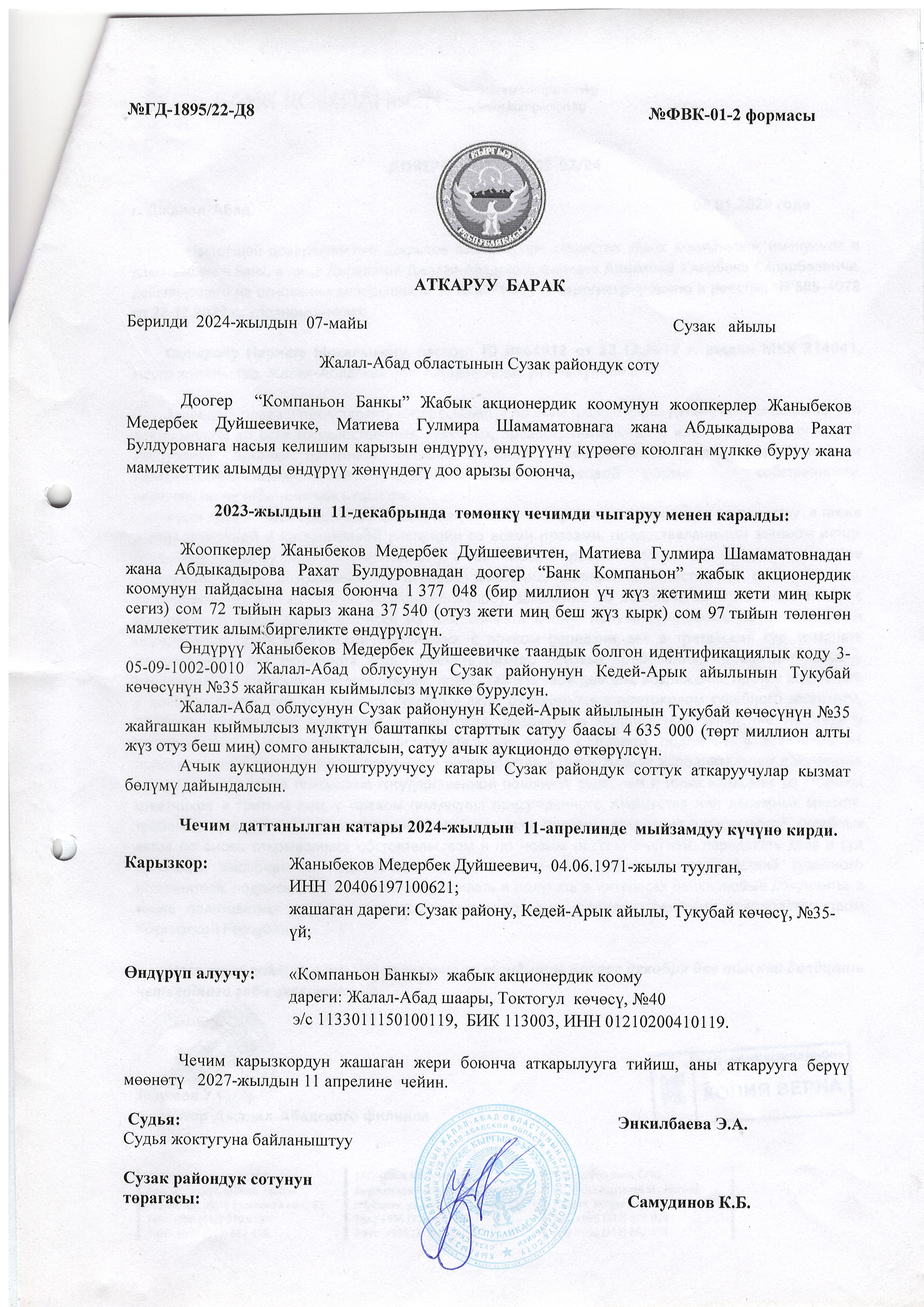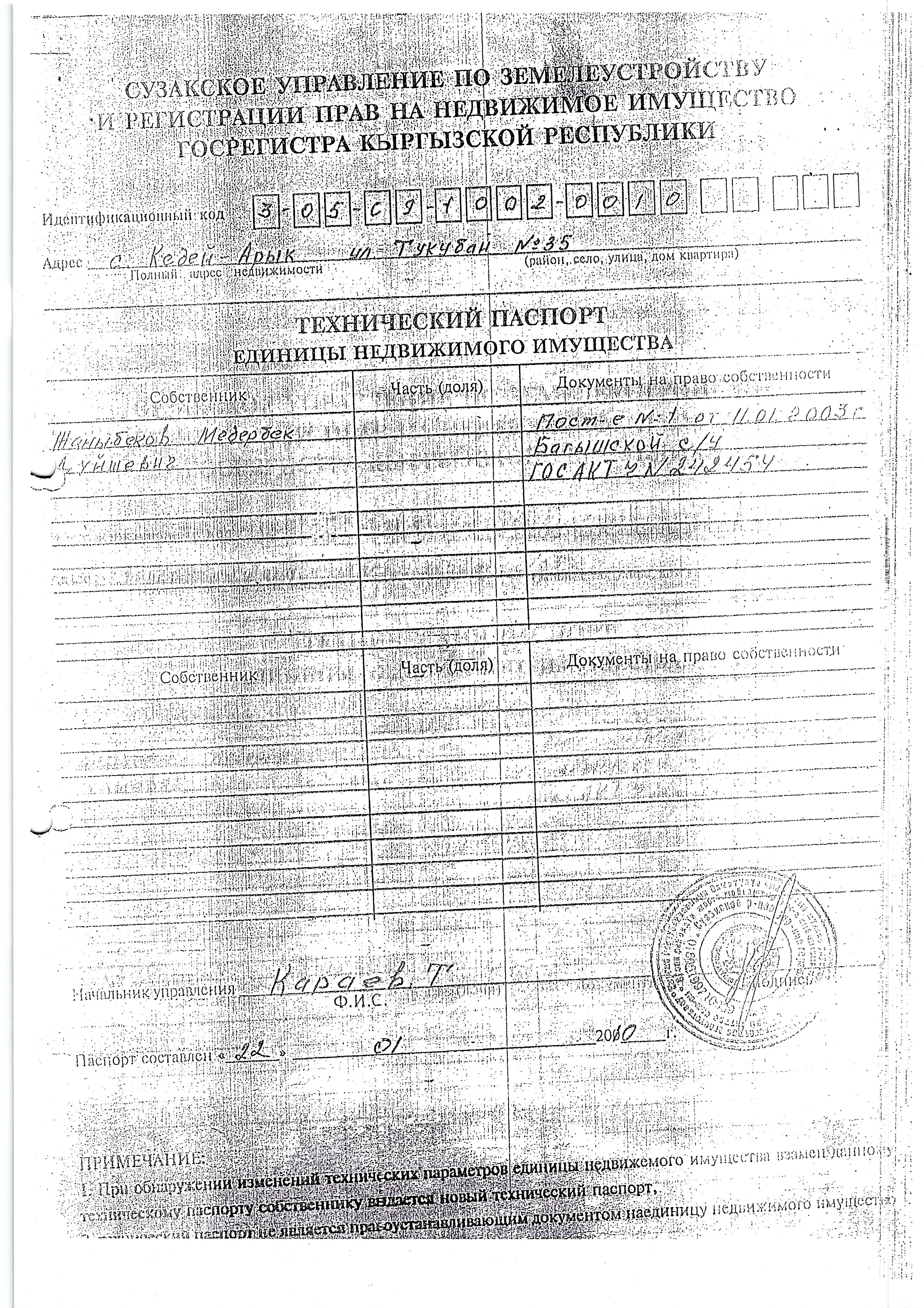 Адрес: обл. Нарын, р-н Кочкорский, а/а Карасуу, с. Орток, ул. Букарбек, д. 5.